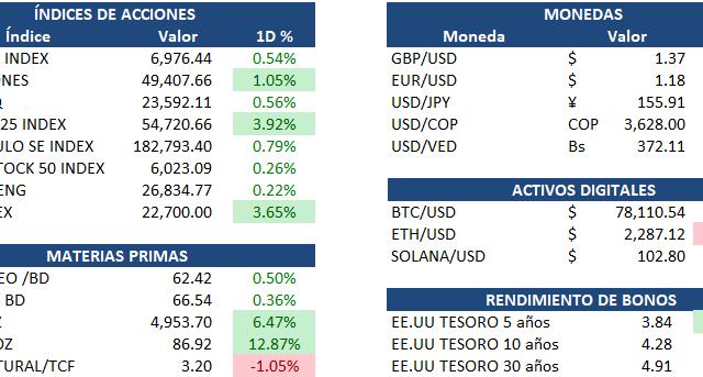 Oro y plata rebotan tras caída histórica impulsada por nominación de Warsh a la Fed. El oro recuperó cerca de 5.5% hasta USD 4 921 por onza y la plata saltó más de 9% a USD 86.70, tras un colapso violento…