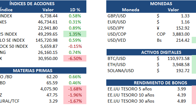 Las acciones de Netflix cayeron 7 % tras presentar resultados trimestrales por debajo de las expectativas, afectados por una disputa fiscal en Brasil. La empresa explicó que tuvo que asumir un gasto imprevisto relacionado con un impuesto del 10 % sobre pagos al exterior, lo que redujo sus utilidades. Sin este impacto, habría superado sus previsiones operativas. Los ingresos del trimestre crecieron 17 %, impulsados por aumentos de precios, más suscriptores y mayores ventas publicitarias. Netflix registró su mejor trimestre en ventas de anuncios y espera mantener ese ritmo en el cuarto trimestre.