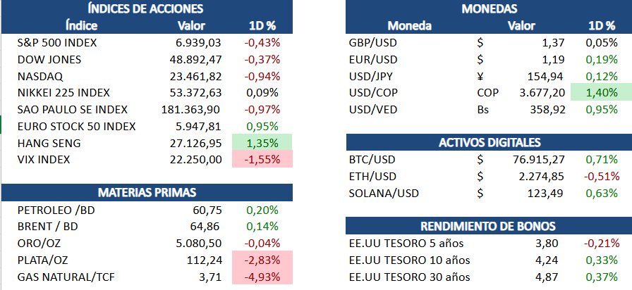 El oro y la plata extendieron su fuerte corrección tras el desplome histórico de la semana pasada, presionados por un dólar más fuerte y toma de ganancias luego de alcanzar máximos récord, el oro cayó cerca de 5% hasta USD 4,617 por onza tras haber perdido casi 10% el viernes, mientras que la plata siguió bajo presión después de caer 30% en su peor sesión desde 1,980 y cotizó alrededor de USD 80,63 por onza, analistas explican que el movimiento responde a un giro abrupto del mercado tras la nominación de Kevin Warsh como próximo presidente de la Reserva Federal, lo que reforzó al dólar y redujo el atractivo de los metales.