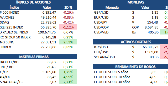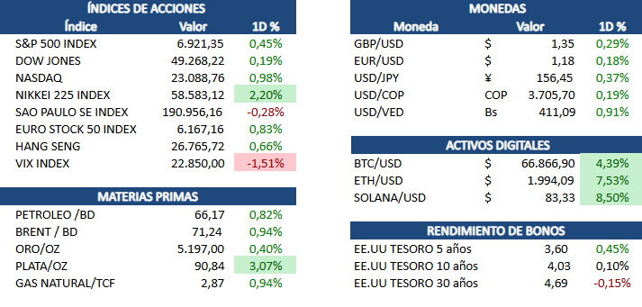 Nvidia reporta hoy resultados del cuarto trimestre fiscal 2026 tras el cierre del mercado, con Wall Street esperando ingresos de entre USD 57 000 y 65 000 millones impulsados por la demanda de chips Blackwell para centros de datos de inteligencia artificial. Analistas anticipan un margen bruto cercano al 75 % y una guia para el primer trimestre fiscal 2027 superior a USD 71 000 millones, con posibilidad de sorpresa al alza si se restablecen ventas a China. El reporte sera clave para evaluar la sostenibilidad del gasto en IA de los hyperscalers, que han comprometido colectivamente mas de USD 650 000 millones en capex para 2026. Las acciones de Nvidia subieron 1,1 % en la sesion del martes y los futuros avanzan 1 % previo al reporte, mientras analistas de Goldman Sachs, UBS y Citi mantienen recomendaciones de compra.